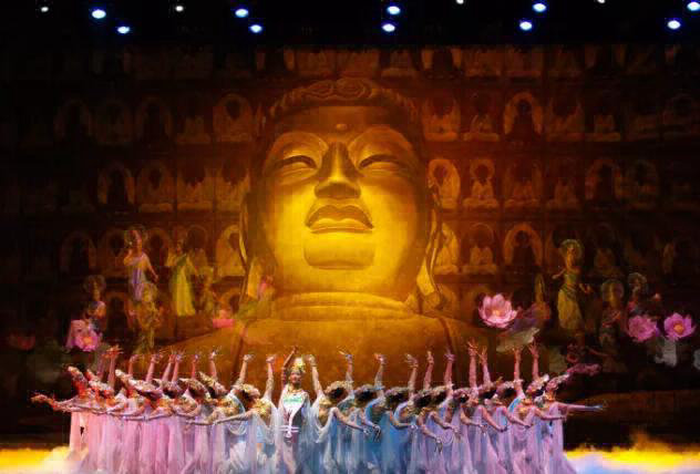 演出當(dāng)晚,最具中國民族舞風(fēng)韻的“金光千佛”首先亮相就贏得熱烈掌聲,觀眾席不時發(fā)出“太美了”的驚嘆之聲。隨后,反彈琵琶等曼妙舞姿在舞臺上逐一呈現(xiàn),用唯美的肢體語言,再現(xiàn)了史詩般的敦煌仙境。在兩個小時的演出中,多變的舞美場景、豐富的舞蹈造型、唯美的舞姿將絲綢之路濃縮成一出扣人心弦的不朽傳說。